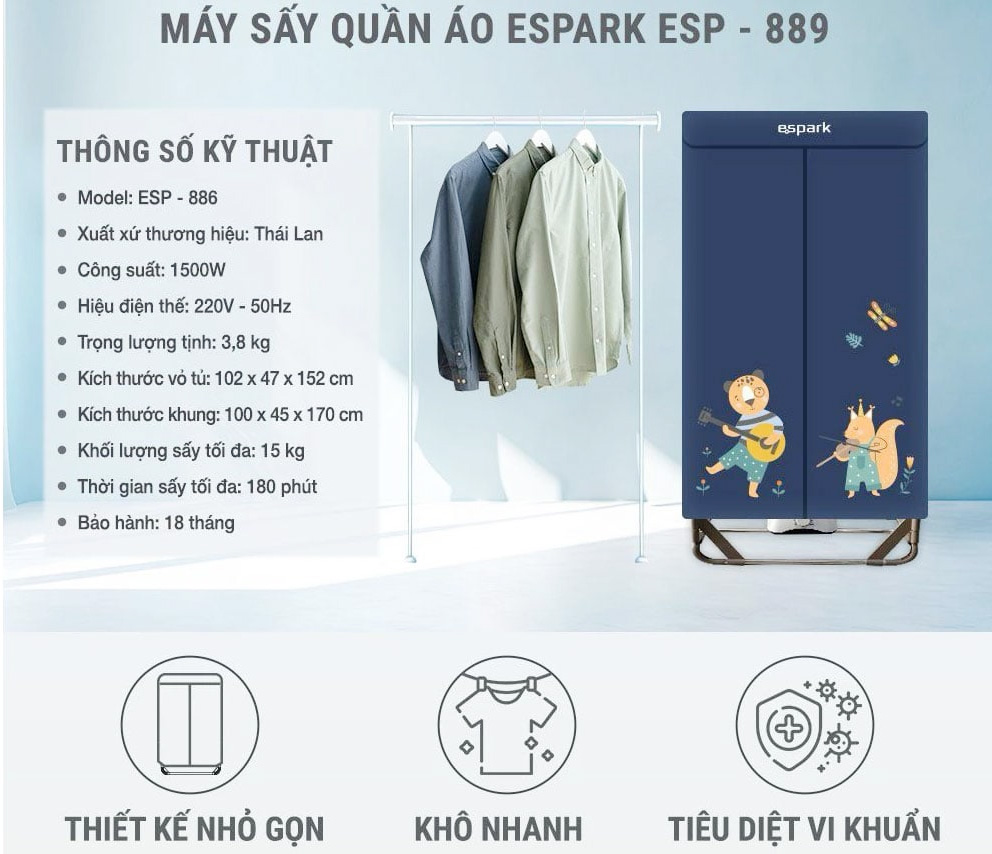 - Tên sản phẩm : Máy sấy quần áo Espark ESP 889